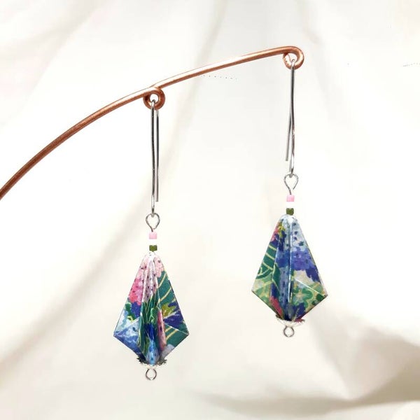 Bijoux, boucles d'Oreilles, Création, Origami, diamant, parapluie, diamant en papier, joyaux, Fait-Main, Papier Verni, Traditionnel, Japon, Fantaisie, Léger, Artisanat, idée cadeau, bijoux origami, hand made, upcycling