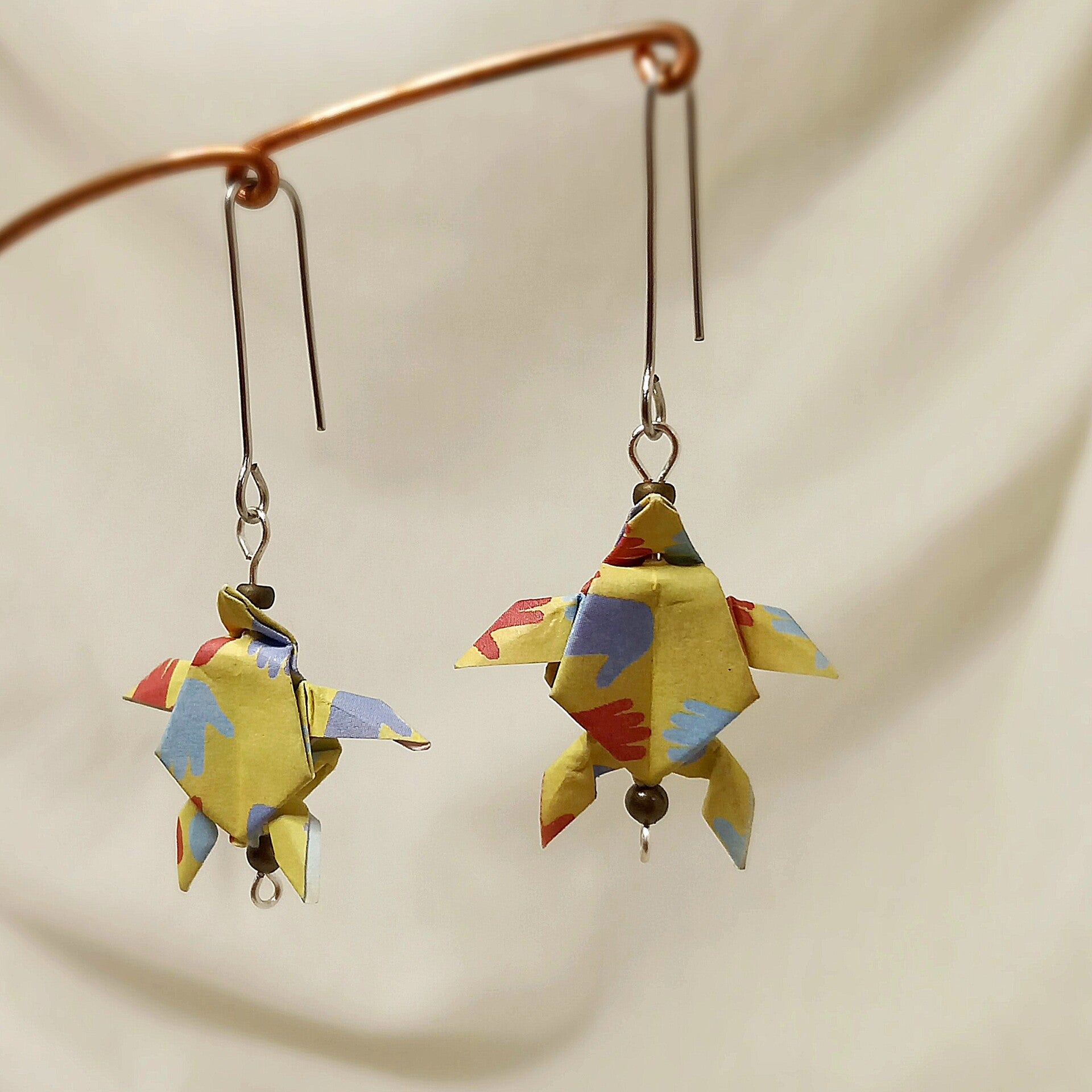 BOUCLES D’OREILLES en origami « TORTUE » faites à la main.