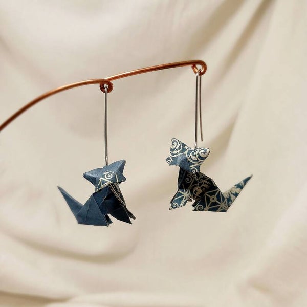 BOUCLES D’OREILLES asymétriques en Origami « CHAT » 100% fait-main